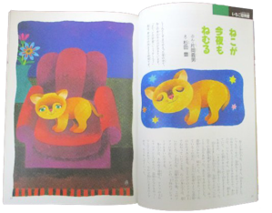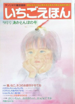 そして『いちごえほん』には、1988(昭和63)年9月号[あかとんぼの号]の特集「猫、ねこ、ネコのお話きかせてね」に、子供向けの物語として「ねこが今夜もねむる」という、猫を主人公とした短い作品を書いています。本人曰く「猫の姿を借りておそらくぼく自身を書いている」とのことですが、グラフィック・デザイナーで絵本作家の杉田豊さんよるカラーイラスト入りという、珍しい作品です。ちなみにテレビアニメ「それいけ!アンパンマン」の放送が開始されたのも同じ年です。